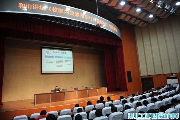 新闻网讯(通讯员 顾婷 图/曾刚)12月4日是全国法制宣传日。当晚6点半,思想政治理论课部特别邀请十堰市茅箭区人民检察院陶梦检察官在会议中心为全院学生举办了一场精彩的关于校园安全的法制专题讲座。此次讲座是“和山讲坛”系列讲座的第九期,由思政课部主任张西平主持。